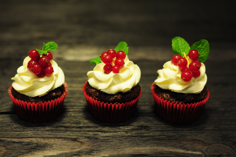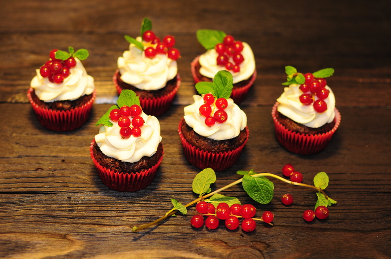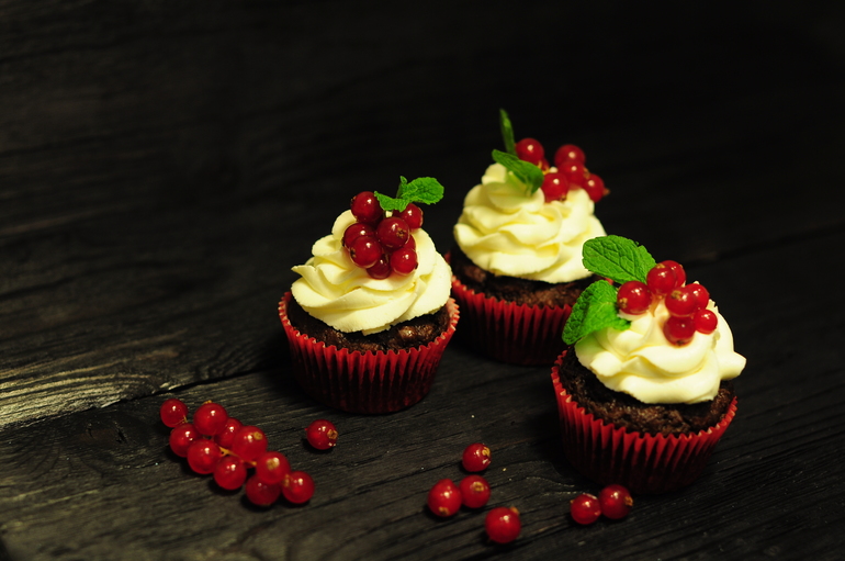 Уже настолько популярные шоколадные капкейки с вишневой начинкой) и мои попытки сделать красивые фото :) Больше фото под катом
