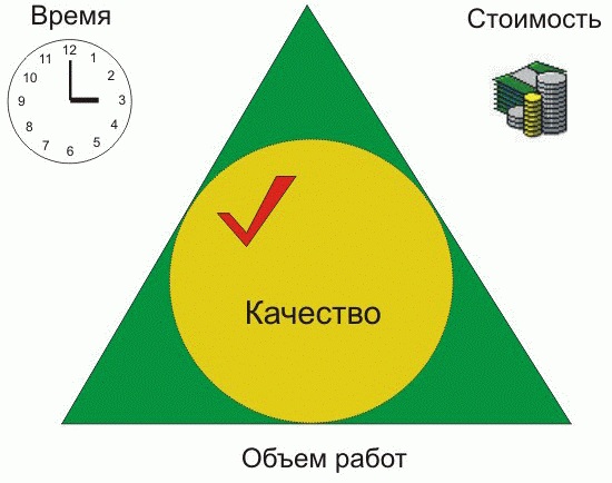 И если увеличиваются требования по одной конкретной стороне треугольника, другие стороны должны быть увеличены соответственно. Иначе пострадает качество проекта - круг "качество" сразу уменьшается в диаметре.