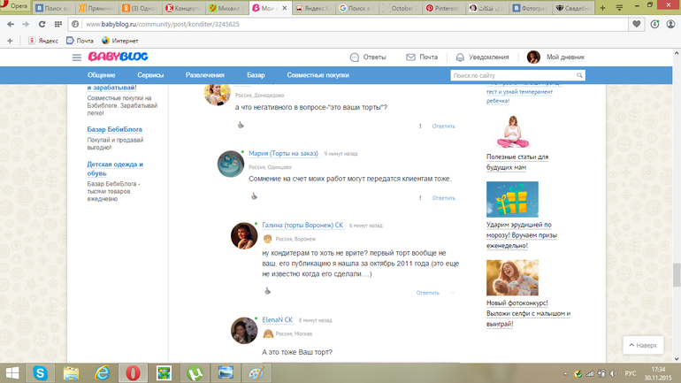 да успела я заметить как дама отличилась и ведь весь дневник почистила, а ведь есть к чему ещё придраться вот тут я теперь на 100% уверена что не её торт https://www.babyblog.ru/community/post/konditer/3243249