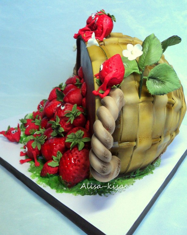 ух, как много информации, спасибо!.Думала тоже над формой мусса, что навряд ли он будет держаться просто так и не расплывется(. Буду делать бисквит , с каким- нибудь стойким кремом, и низ корзины думаю подрезать, чтобы ровно лежала на торте.)