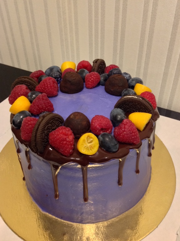 Украшение тортов кремом,шоколадом, фруктамиТортик весом 2кг. Внутри молочная девочка с малиной и крем на основе маскарпоне.