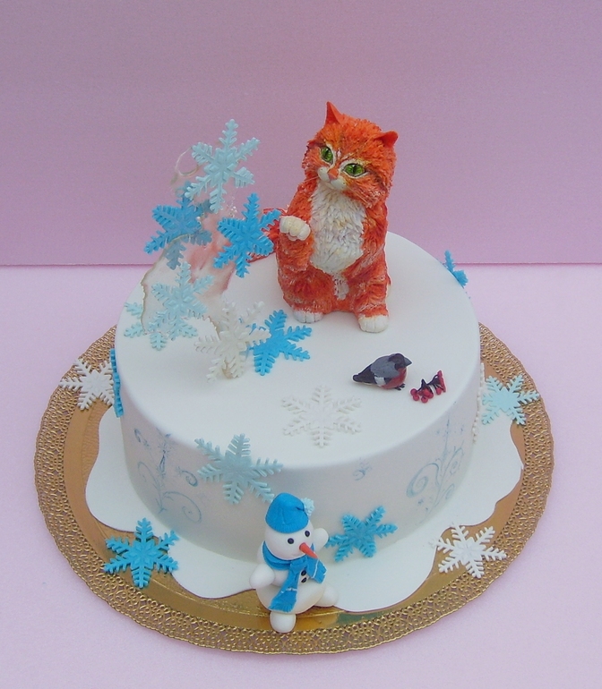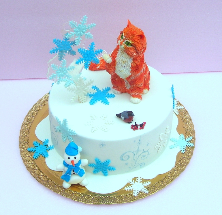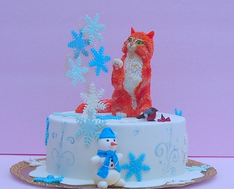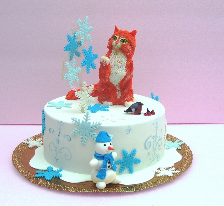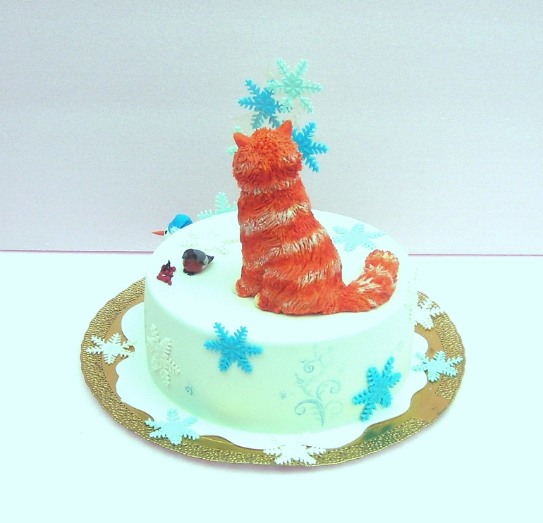Торты детскиеПросили торт на ДР девочки, единственное требование было - "торт с рыжей кошкой.. не мультяшной". Ну "ок".. Прикинула дизайн - рыжая кошка, ловит кленовые листики.. ну и т.д.. Под это дело и слепила кошку..