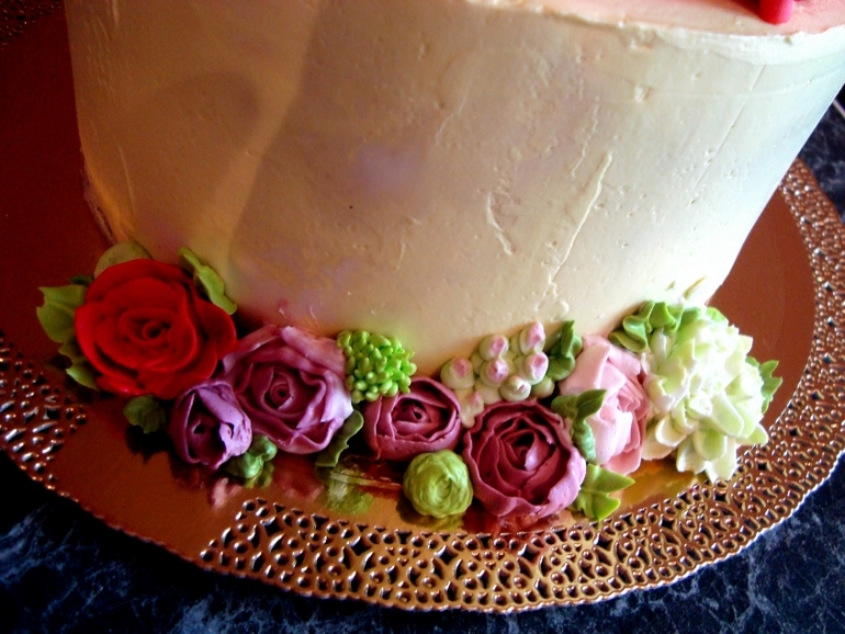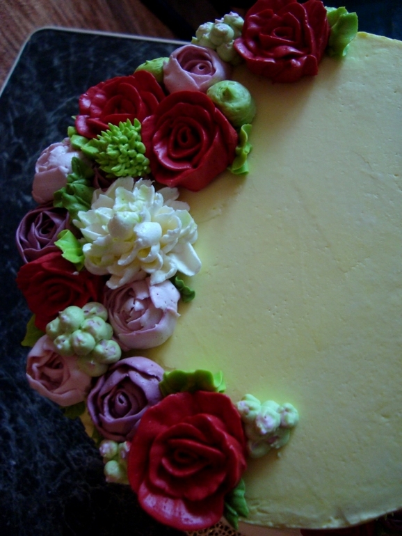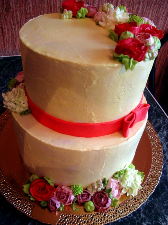 Украшение тортов кремом,шоколадом, фруктамиНижний ярус - шифоновая прага с вишней и прослойкой из карамелизованных грецких орехов в шоколадном ганаше, верхний ярус - ванильный бисквит, пропитка лимончелло, персики, прослойка из безе в белом шоколаде, оформление - швейцарская меренга, общий вес 4400