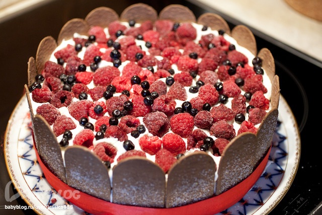 Мне кажется с ярко красными ягодами или желе или и тем и тем:) делают еще из савоярди заборчик, внутри бисквит видимо крем желе ягоды и тд, а вот на ленту, которой повязывается этот заборчик можно нанести рисунок кардиограммы - будет бесконечная жизнь:)