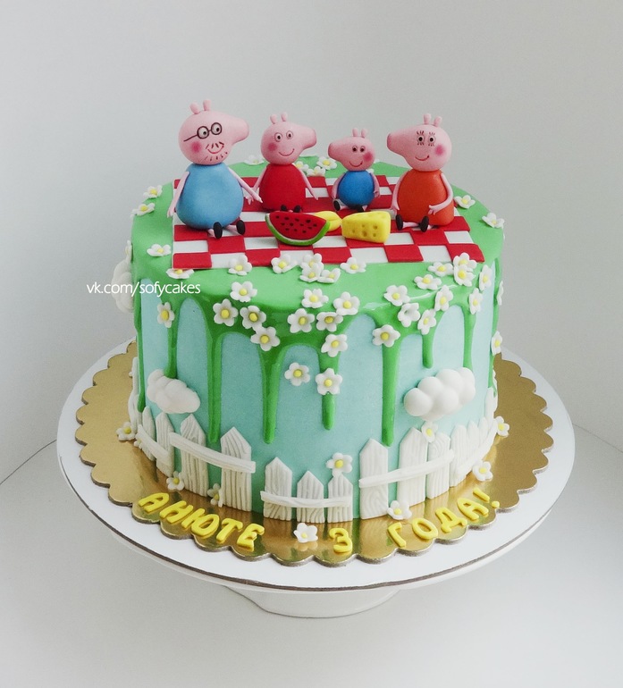 Торты детскиеТорт Свинка Пеппа и ее веселая семейка на пикнике)