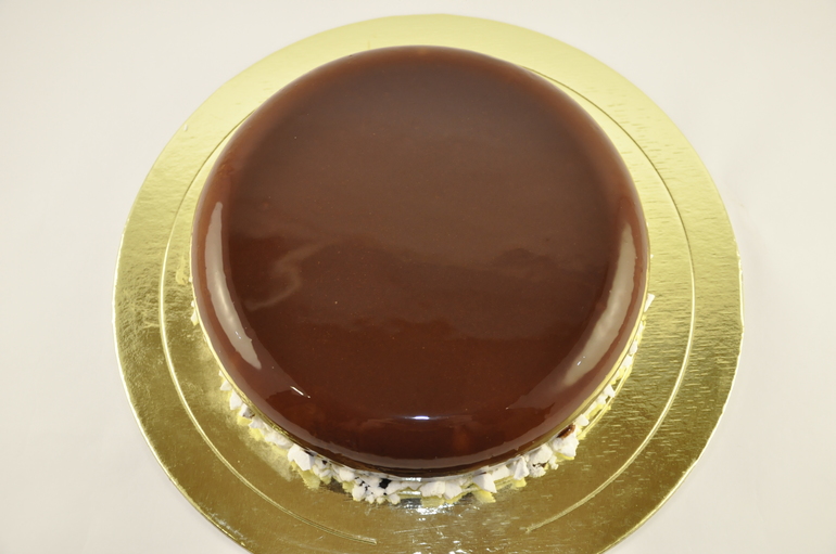 зеркальная глазурь на ледяном торте застывает очень быстро.