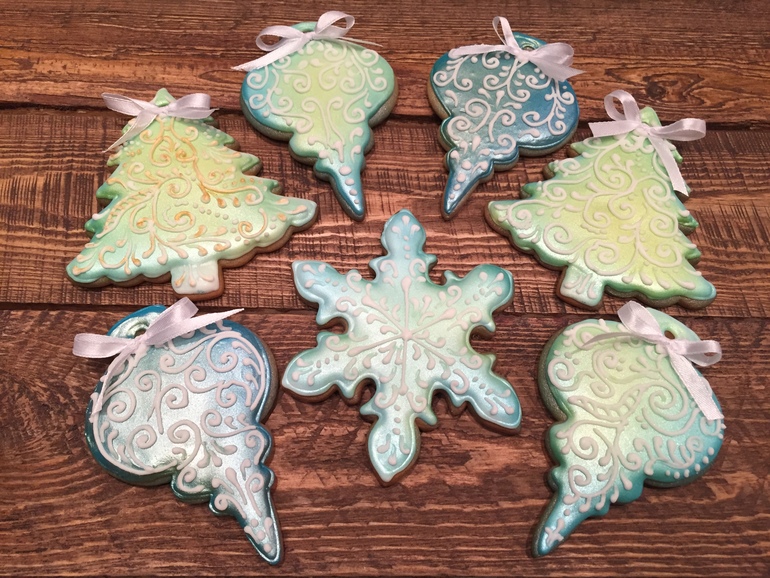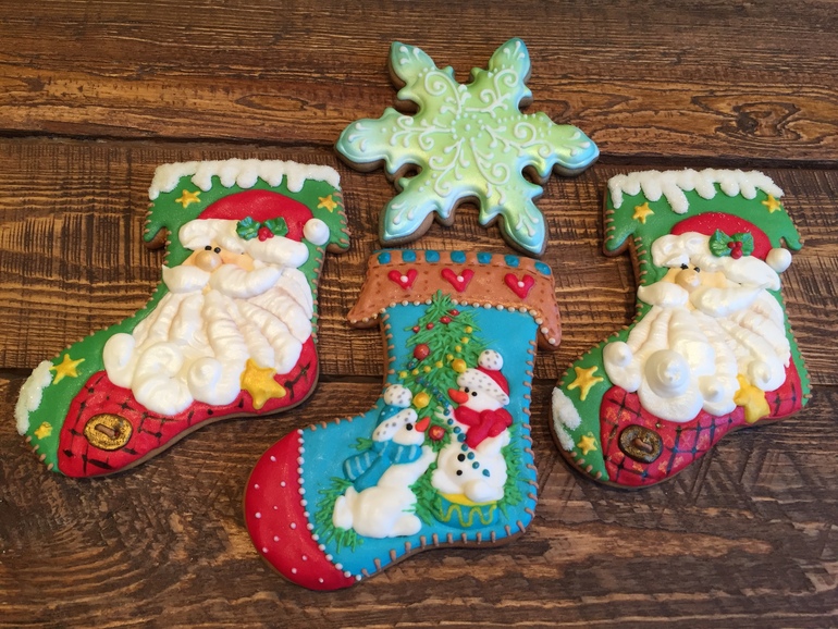 Очень красивые пряники. Елена, подскажите, а как сделать такую рельефную бороду как у Деда Мороза на носочках? И как получается такая перламутровая глазурь, это такие красители?