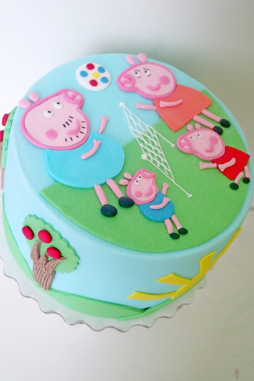 Торты детскиеЗаказчица хотела объединить увлечения своих детей. дочке нравится Пеппа, а взрослому сыну волейбол. Так родился этот дизайн.