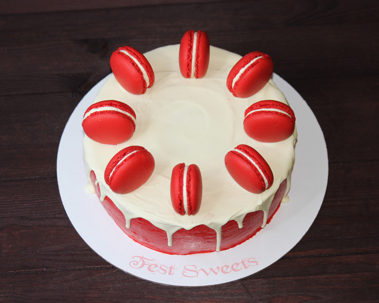 Украшение тортов кремом,шоколадом, фруктамиЧизкейк красный бархат с макарон красный бархат