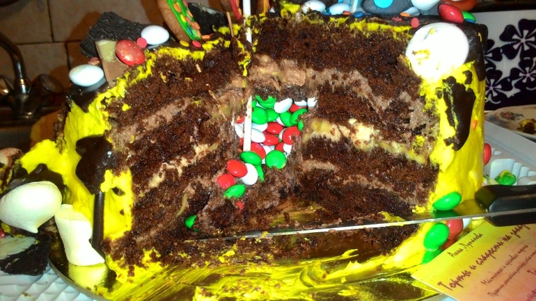 Под катом еще фото и разрез этого торта и фото другого "Конфетного взрыва".