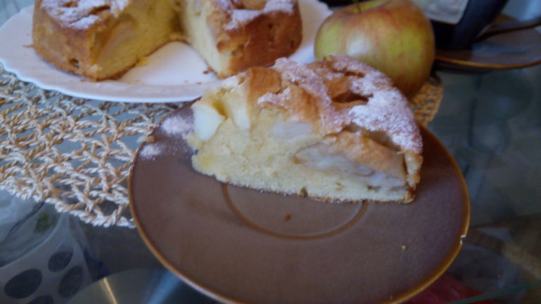 Делала на 4 желтка. Увеличила количество ингредиентов пропорционально на 3 желтка. Выпекала в форме 21 см. Яблоки выкладывались по кругу, осталось много лишних. Форму мне бы взять чуть побольше в диаметре: все яблоки поместились бы и вышло больше яблок, меньше кекса.