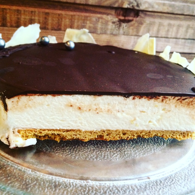 Медово-имбирный корж без сахара,лёгкий-лимонный мусс,глазурь из горького шоколада.