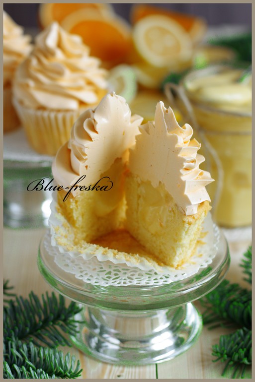 Апельсиновые с лимонным курдом и белково-масляным заваренном на апельсиновом соке креме.
