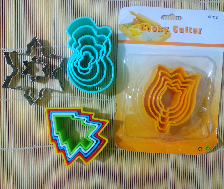 Это китайские формы, снежинки 100 р.обе, ёлочки, снеговики, тюльпаны по 200 р.за набор, максимальная высота 10 см.