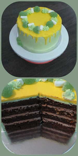 А вот что у меня сверху зеленое, я не помню, скорее всего белый шоколад и масло.