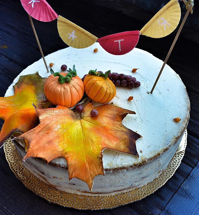 Морковный красавец с осенней тематикой, тыквы и лист из мастики!