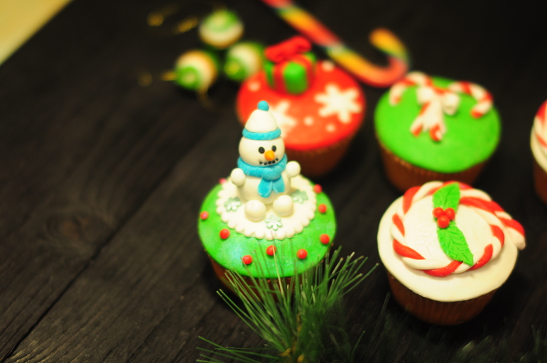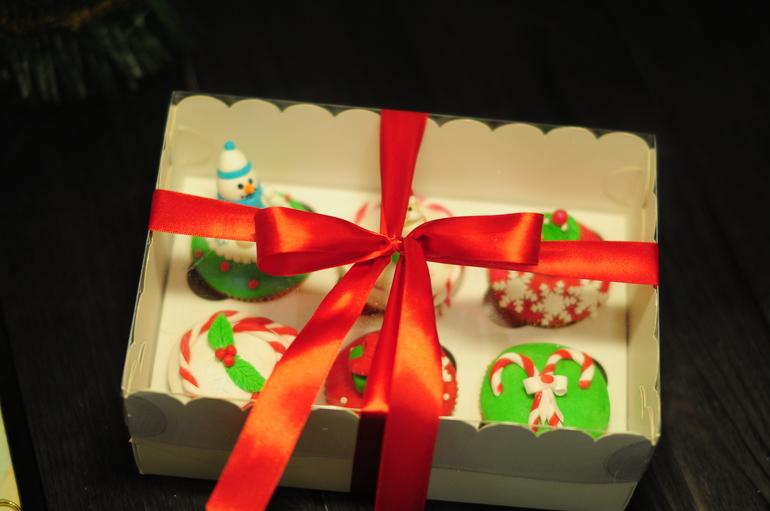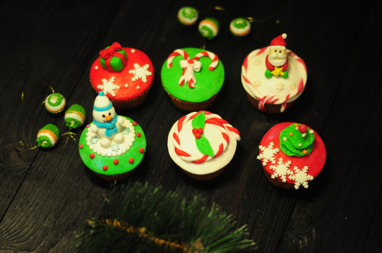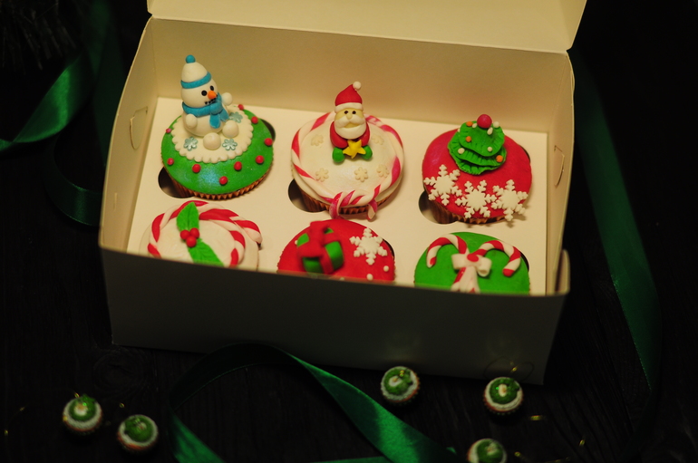 Мои первые мастичные капкейки. Заказала девочка для своих родителей на новый год.