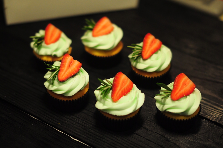 Ванильные капкейки с клубничной начинкой, шапочкой из крем чиза и свежей клубникой.