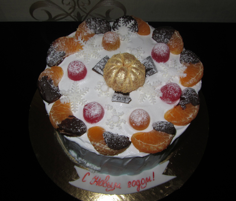 Красивый тортик! А чем покрыт мандарин в центре? И дольки мандарина не сохнут или они тоже чем-то покрыты? Я сделала торт с мандаринами сверху и желе залито, но мандарины немного торчат - вот думаю высохнут теперь?