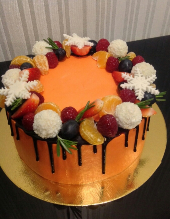 Украшение тортов кремом,шоколадом, фруктамиВнутри молочная девочка с кремом из взбитых сливок и малины.