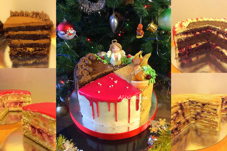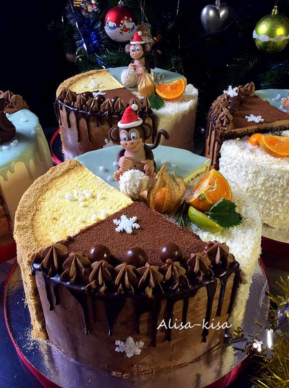 Украшение тортов кремом,шоколадом, фруктамиС Рождеством Христовым)