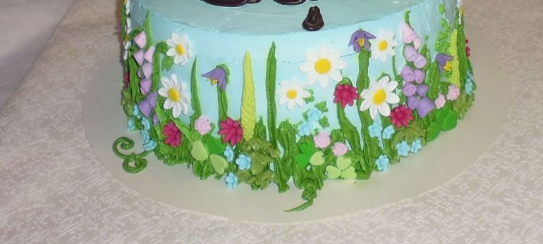 Сливки полопались, потом трещинки загладила. Мне понравилось делать такую боковинку, с цветочками.