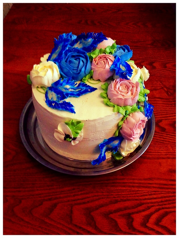 Украшение тортов кремом,шоколадом, фруктамиВообще птичка не планировалась до вчерашнего дня. Заказчица моя коллега и к концу рабочего дня у нее созрела идея, что розочками уже никого не удивишь и осчастливила меня прямо перед самым выходом из рабочего кабинета. Птичка получилась в муках ночь. То ли магнитные бури, то-ли моё раздражение на то, что нужно менять дизайн торта сделали свое дело. С утра болела голова и настроения ноль. Дочка внезапно проявила интерес к инструментам, потом полезла в чашки с кремом, далее остатки зелёного крема из мешка живописно украсили стиральную машину листиками. Крыло птичке отломили случайно и это стало последней каплей, пошла пить персен. Только отмыть кухню... эх. А ведь здесь у девочек и 2 и 3 маленьких детей! У меня вопрос: какие антидепрессанты вы употребляет? )))) Ну и сам торт. Страдалец мне больше нравится без птички, но коллега настояла, чтобы "курица" осталась на месте. Хозяин барин.