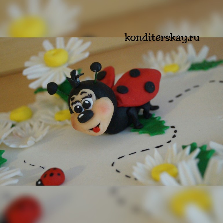 Отличный торт!эту божью коровку я тоже делала на другом торте,в душу мне запала она.