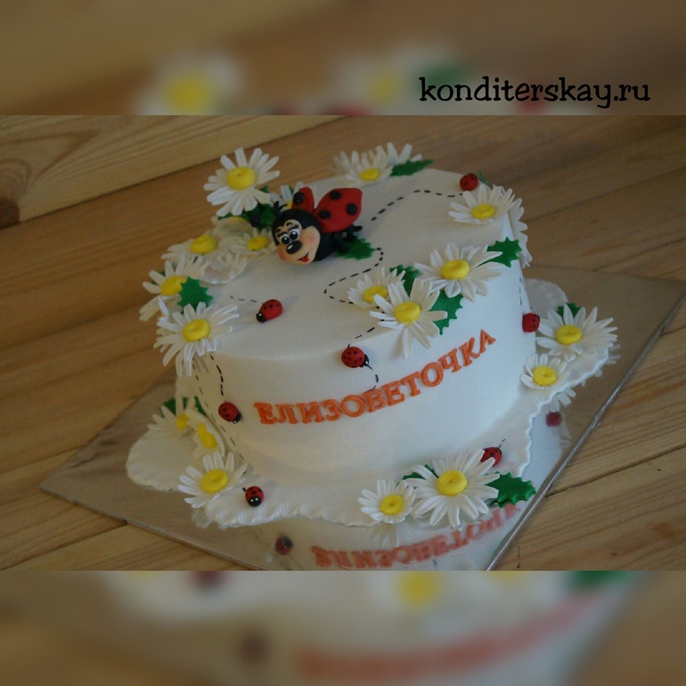 Милый тортик, только в имени ошибка - ЕлизАвета. А как же вы ромашки вырезали без плунжера, неужели вручную😵