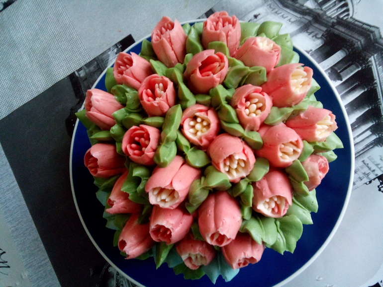 Спасибо! Украшать я свои тортики кремом начала всего месяца 2-3. Еще учиться и учиться)))