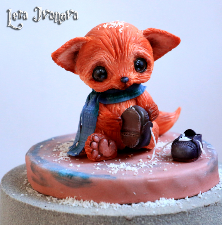 Фигурки и цветы из мастикиЭто лисёнок из мастики моделпаст, внутри воздушная рисовая масса.
