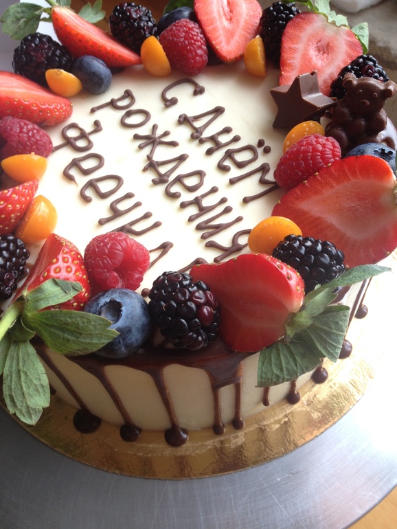 хороший торт, аккуратный! с безешками что-то вы мудрите. не могут они таять. надписи вручную не делаю. только молдом иногда. и вообще надписи на тортах не приветствую