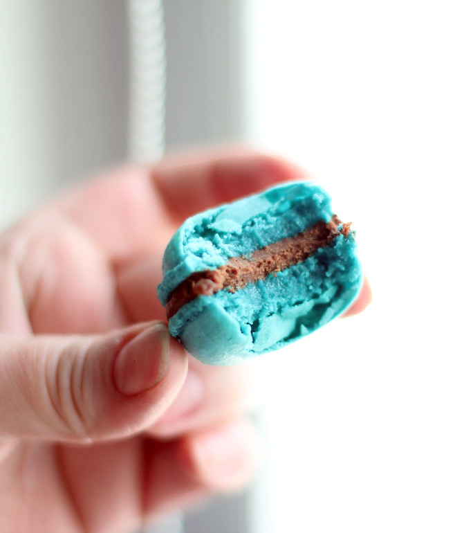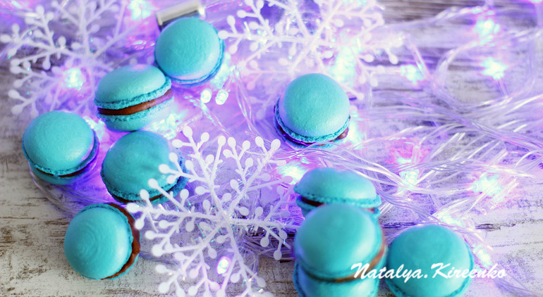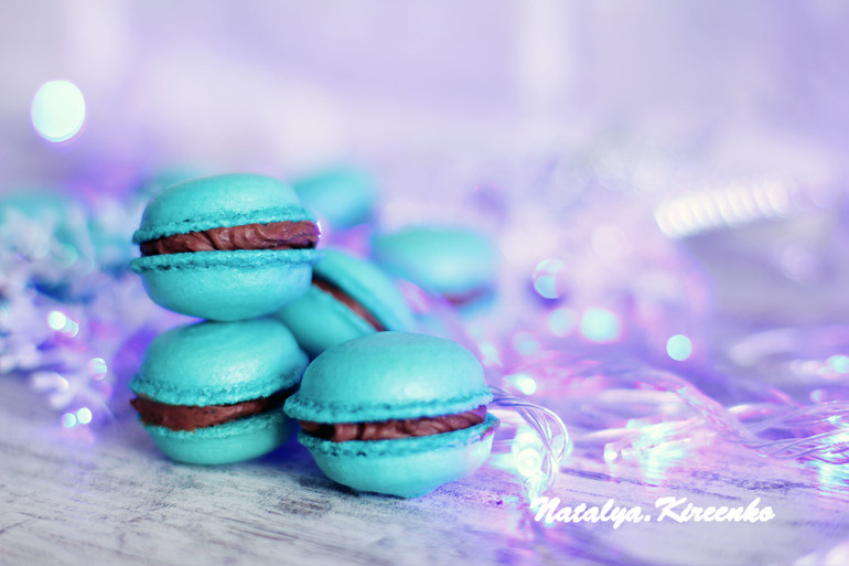 Печенье,пирожные,конфеты, выпечкаНа сей раз бирюзовые, с ганашем. Тесто получилось плотноватым, не стекало с лопатки, что делать в таких случаях? Сами макароны тоже плотненькие. Впрочем, на вкус не повлияло, они прекрасны :)