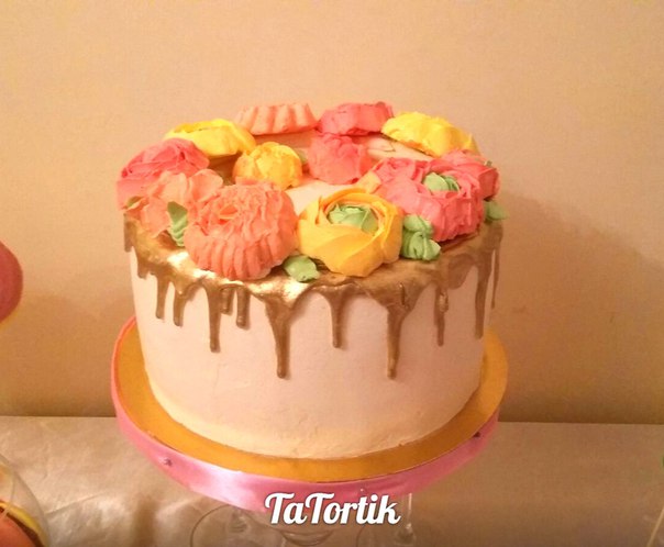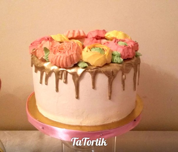 Украшение тортов кремом,шоколадом, фруктамитакой торт я решила испечь на свой день рожденья,скажу по секрету первый раз пекла на свой др.торт с кремовыми цветами не делала ,а такого плана тем более.давно хотела торт с золотыми подтеками.сделала и вижу ,что лучше было бы серебренные сделать,если конешно подходит к этому торту подтеки,мне в принципе нравится.и небольшой,скромный кенди бар и фото торта со мной под катом.фото жаль что ночные.