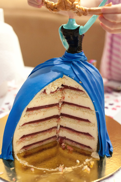 Внутри по заказу моей дюймовочки ванильный бисквит от Луки Монтерсино, баварский мусс на белом шоколаде и клубничное желе.
