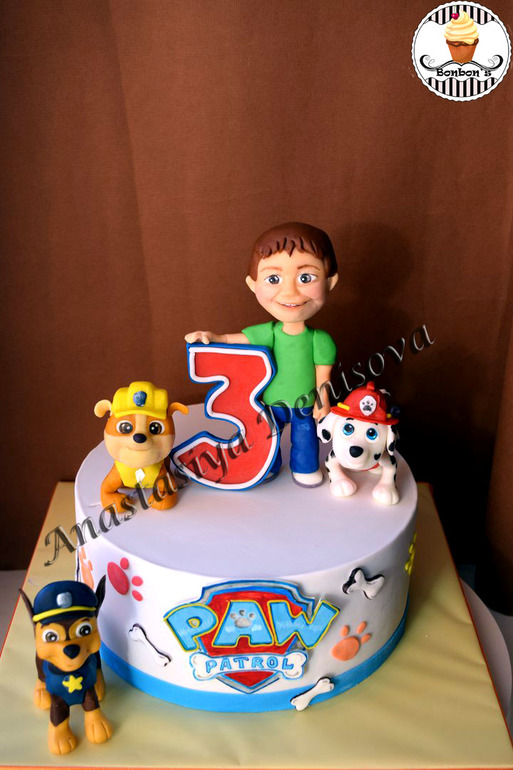 Щенячий патруль и именинником)Вес 3,3 кг, внутри шоколадный бисквит, мусс с молочным шоколадом,бананы
