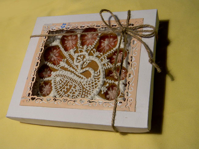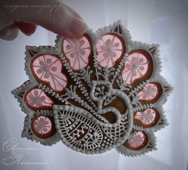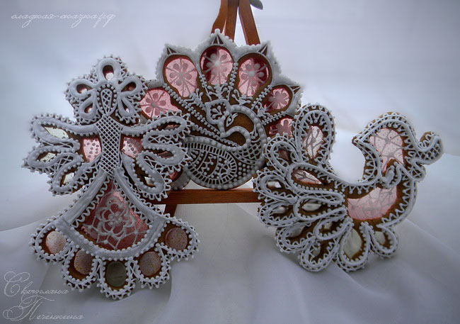 ПряникиКогда есть свободная минутка, я занимаюсь своими любимыми витражными пряниками. Пряный аромат пряника прекрасно сочетается с хрупкой нежностью ягодной карамели. Это не поток. Такие пряники не делают десятками и сотнями, они единичны и в каждый вкладывается душа. А вдохновение приходит откуда угодно! Например, от взгляда на воротничок из вологодских кружев) К каждому такому пряничку я своими руками делаю коробочки. Для каждого - свою собственную, индивидуальную. Тоже эксклюзив)