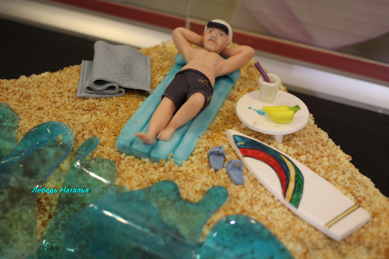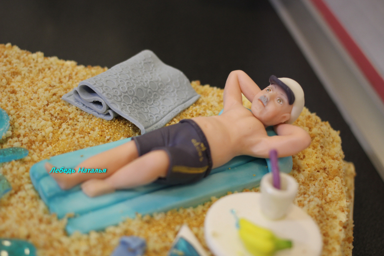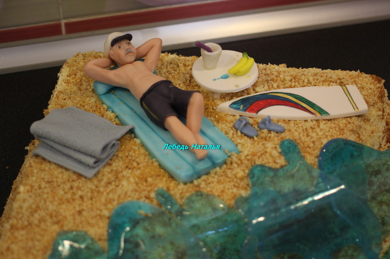 Заказчица долго выбирала дизайн тортика ....а потом как посыпались идеи ....тут еще солнышка ...пальм и райских птичек нет ....места на тортике не хватило