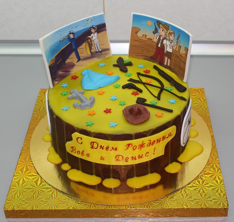 Торты детскиеСложно всегда сделать мне торт на двойной ДР, один мальчик просил капитана с матросом, а другой ковбоя с индейцем, придумалось мне только так)))