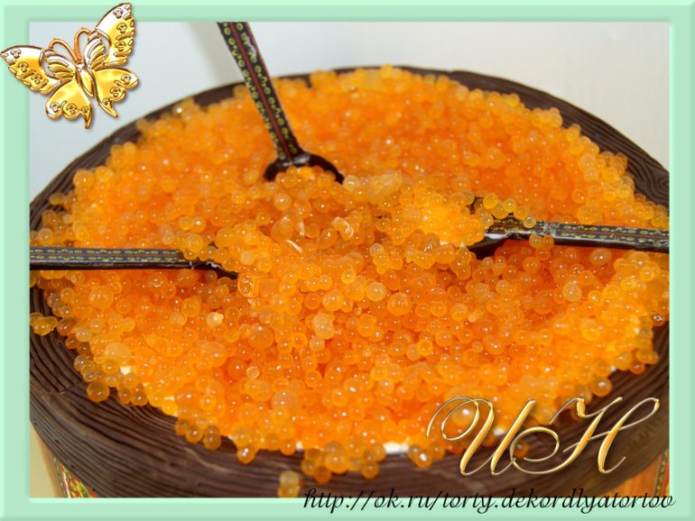 а что внутри? и еще вопрос икру есть можно с такого тортика или нет? (это же по идее желатиновые шарики)