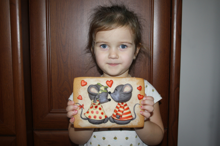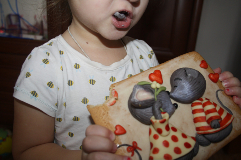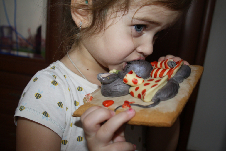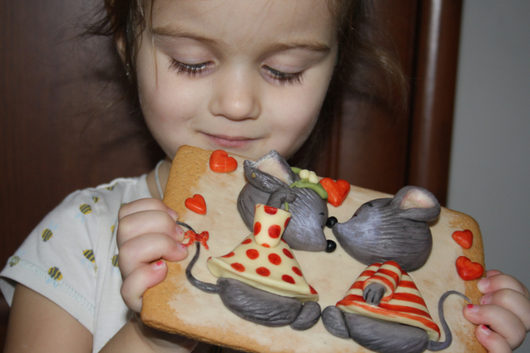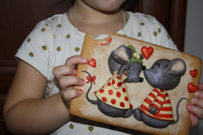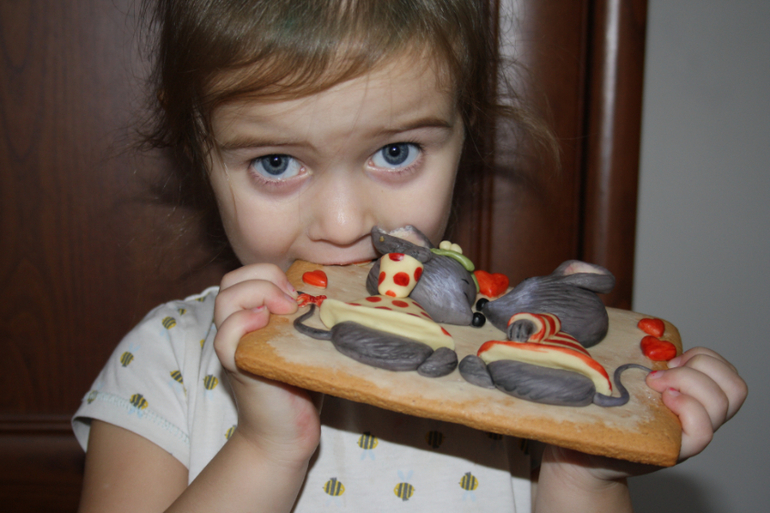 хех)))) какие у вас мыши жирные))))) я то думала, что они достаточно плоские, а они такие выпуклые!!!))) очень красивый пряник.