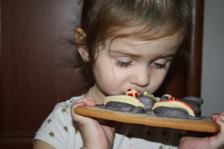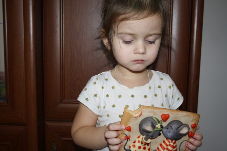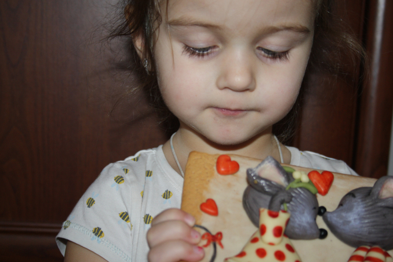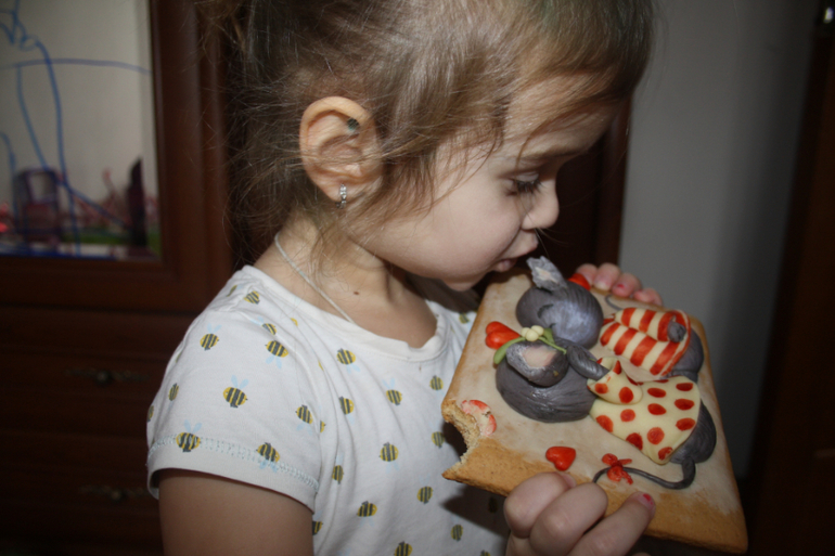 у меня как-то был случай: заказали пряники мама-собачка с щенками, так ребенок запретил из кушать, уже скоро год, а они стоят под стеклом, ребенку жалко откусывать голову собачкам!