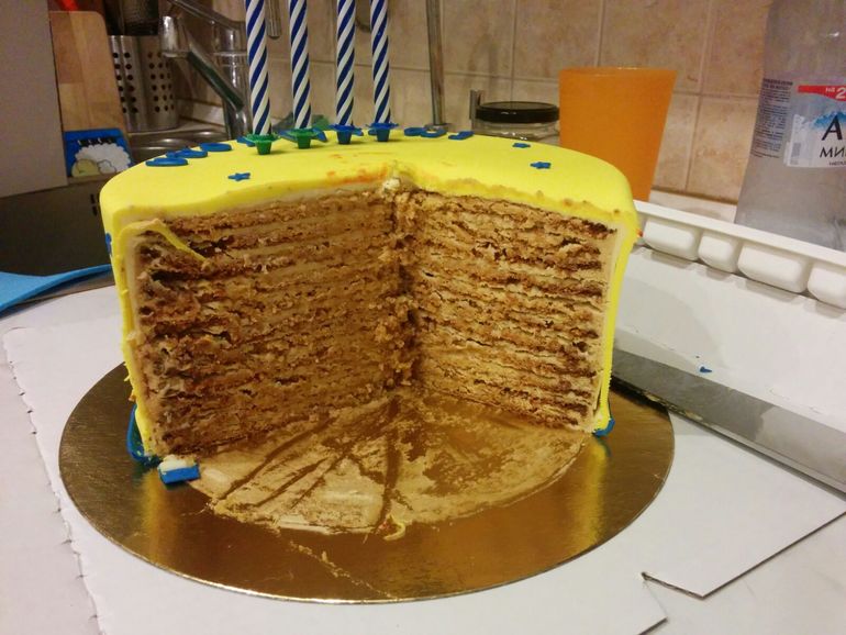 Торты детскиеВнутри эстерхази: ореховые коржи на миндальной муке с фундуком, заварной ванильный крем муслин с фундучным пралине (разрезик под катом)