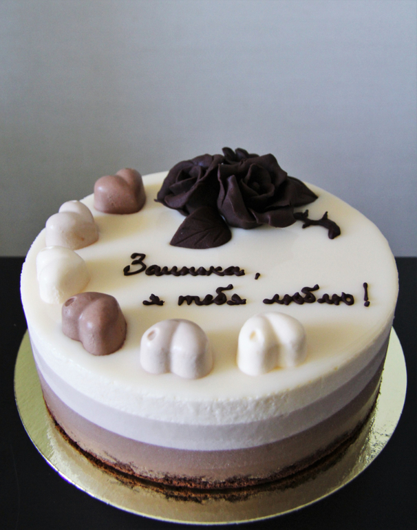 Торт 3 шоколада на заварном креме. Роза из пластичного шоколада.