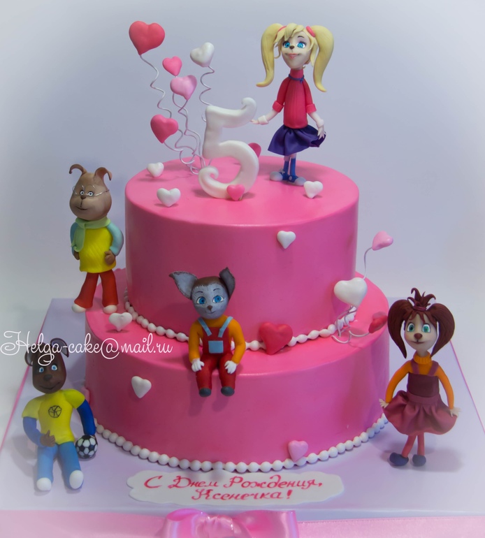 Торты детскиеОчередной с Барбоскиными, для девочки с сердечками)) Сердечки на проволочке у меня прямо бум))