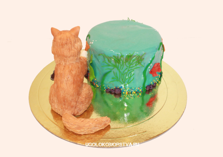 Тортик для девочки, которая любит своих рыбок и кота))