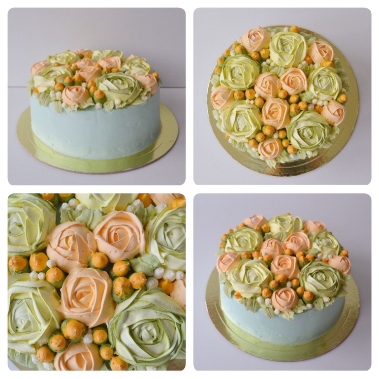 ) Обожаю такие цветочные торты!!!! Отличное цветовое сочетание)) Розочки из белкового ЗАВАРНОГО крема? И если не сложно ответить, каким кремом покрываете такие тортики? Буду Ооочень благодарна за ответ))))) Я использовала крем Шарлотт и он почему то у меня трескается на следующий день(((