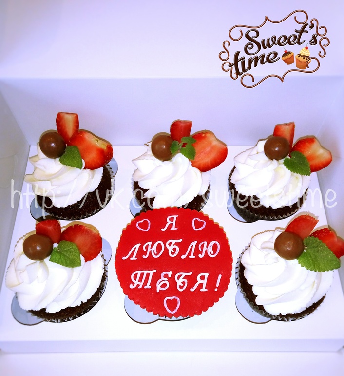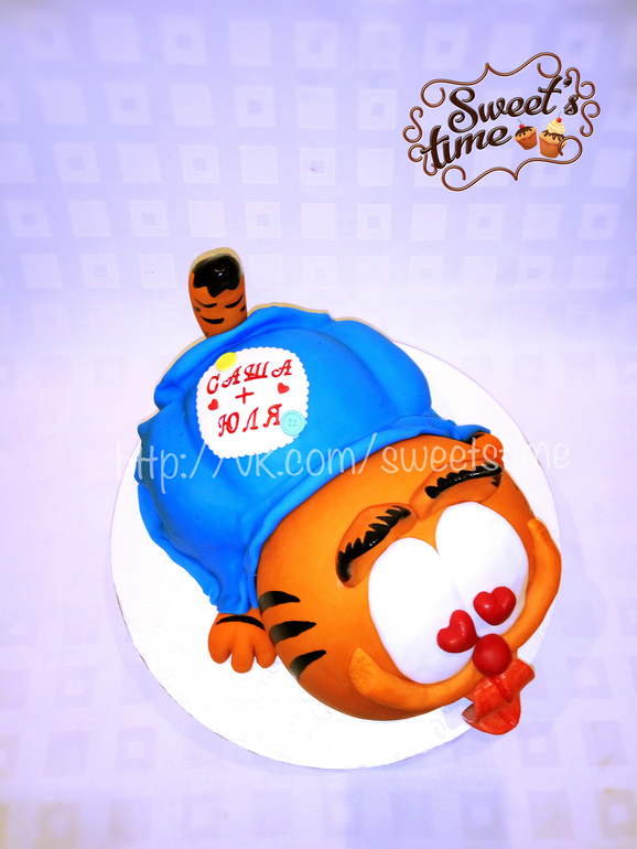 Торт "Гарфилд" и капкейки на день всех влюбленных))