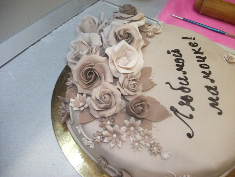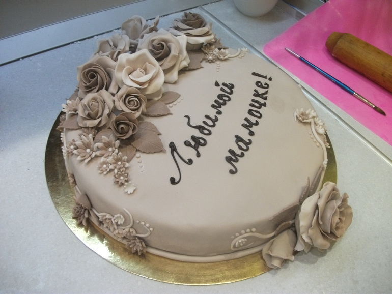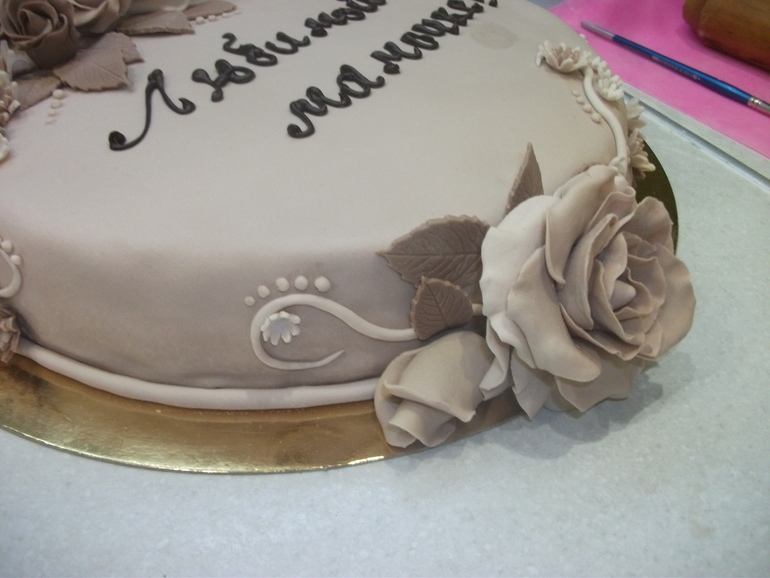 Для первого мастичного,он просто шикарен! Поработать над выравниванием и вообще красота будет. Если попридираться, то лепести, листики хотелось бы потоньше и надпись поровнее.