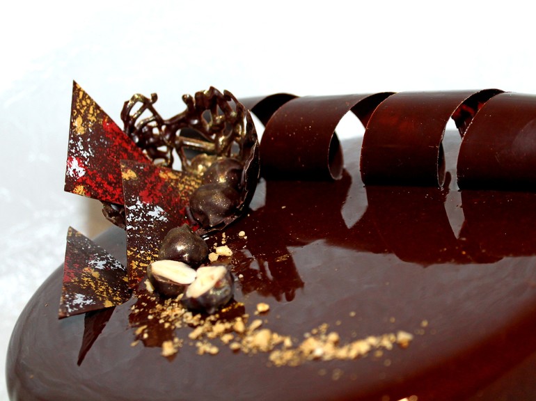 Этот мегашоколадный торт с фундуком поехал мужчинам в качестве поздравления с наступающим праздником.